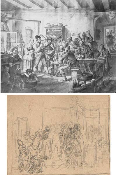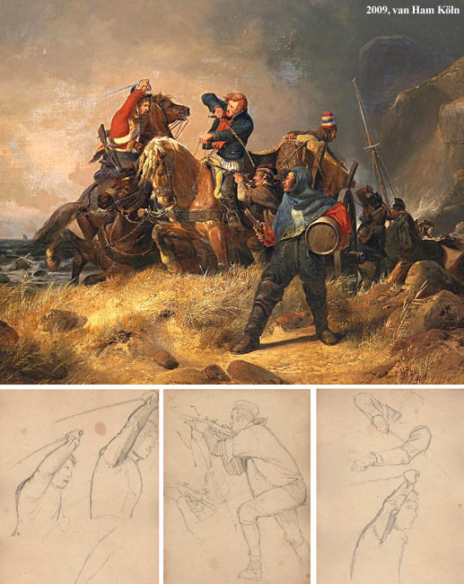 Zu letzterem gibt es zahlreiche Vorarbeiten, in ein Ölgemälde umgesetzt hat