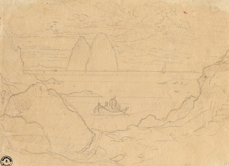 Die Faraglioni, Felsen vor Capri, wohl Studie für eine geplante Radierung,