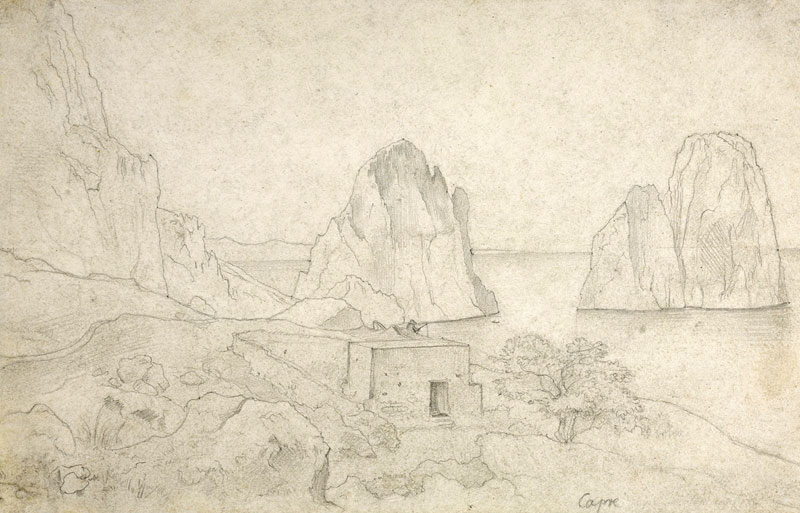 Dessin de Ludwig Richter. Capri, Faraglioni - dessin devant la nature