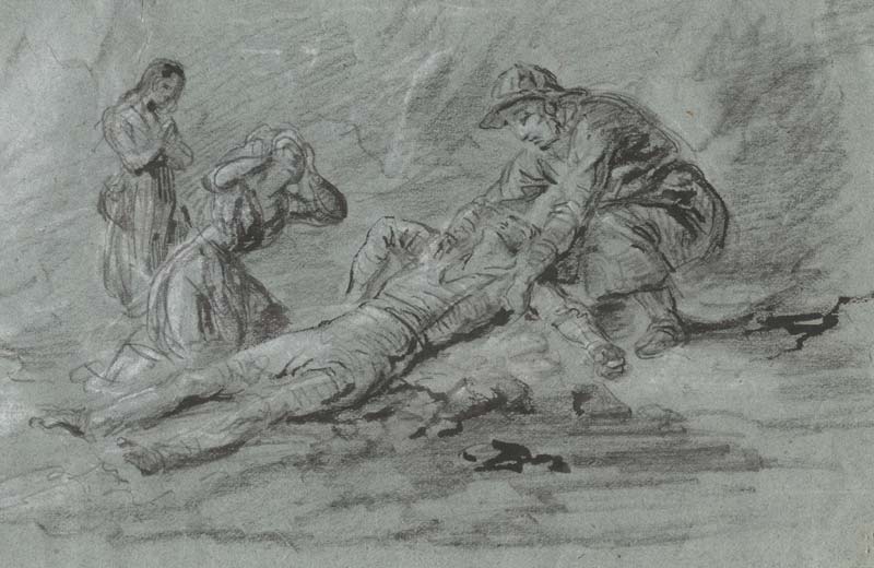 Vers 1831. Alexandre Colin présente au Salon de 1831 Un matelot noyé trouvé par des pécheuses [sic]. |