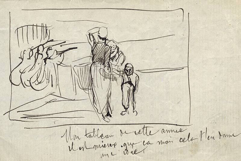 Lettre de 1874 - avec l'esquisse du tableau actuel de l'artiste. Cette peinture,