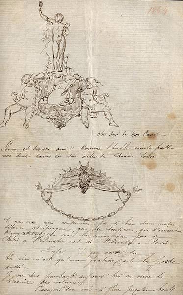 Ici, comme sur d'autres lettres, il fait preuve de son talent pour la décoration.