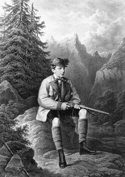 Le prince héritier d'Autriche, Rodolphe, en costume de chasse.