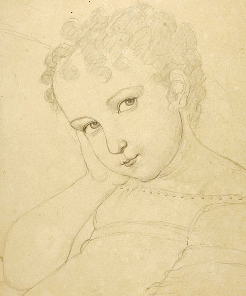 Beide müssen sich in Rom begegnet sein. Hier hat man im Übrigen den Eindruck, einer exakten bildlichen Umsetzung einer Quelle der Frühromantik gegenüber zu stehen. Friedrich Schlegel gibt in seiner "Lucinde" 1799 als Beispiel für ein genuines weibliches Selbstbewusstsein die Beschreibung eines 2-jährigen Mädchens, der kleinen Wilhelmine: "Der stärkste unter vielen starken Beweisen für ihre innere Vollendung ist ihre heitere Selbstzufriedenheit. Wenn sie gegessen hat, pflegt sie beide Ärmchen auf den Tisch ausgebreitet ihren kleinen Kopf mit närrischem Ernst darauf zu stützen, macht die Augen groß und wirft schlaue Blicke im Kreise der ganzen Familie umher." |