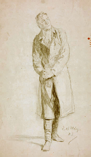 Julius Scholtz (1825-1893) Einzelstudie für "Yorck vor den preussischen Ständen in Königsberg", datiert "15.3.1883", also unmittelbar vor Abgabefrist des Entwurfs.