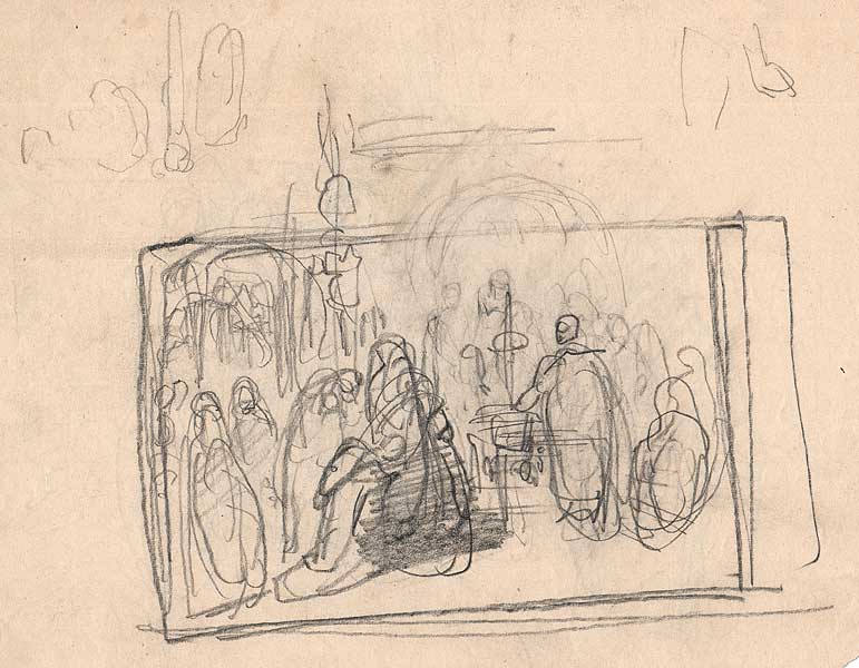 Für die Komposition "Die Grafen von Scheyern übergeben ihr Stammschloss", als Holzschnitt publiziert (Die Scheyern nannten sich später Wittelsbacher) |
