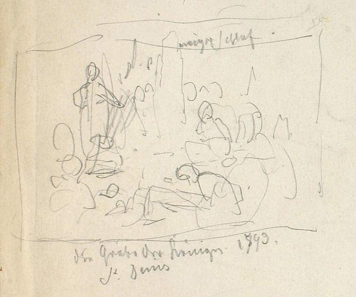 für "Nero auf den Trümmern Roms" 1858 - Flüchtiger Gesamtentwurf |