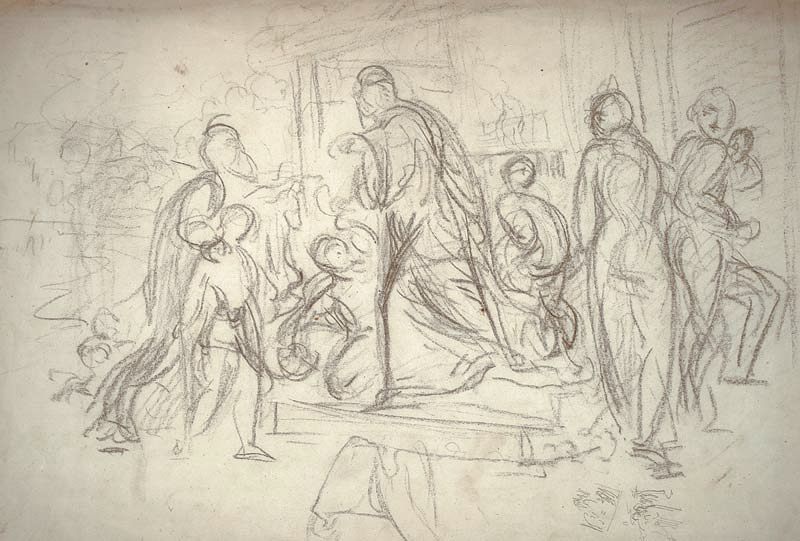 Claudia Haertl-Kasulke renvoie vers une composition du professeur à l'académie, Clemens von Zimmermann. Son Tobie aurait pu avoir servi de modèle au jeune Piloty. |