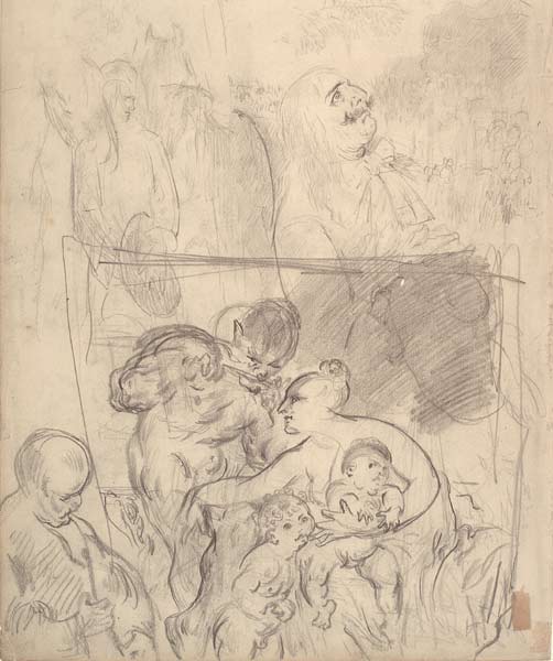 Seine Suche nach der Komposition zeigt jedoch in den Zeichnungen den Einfluss