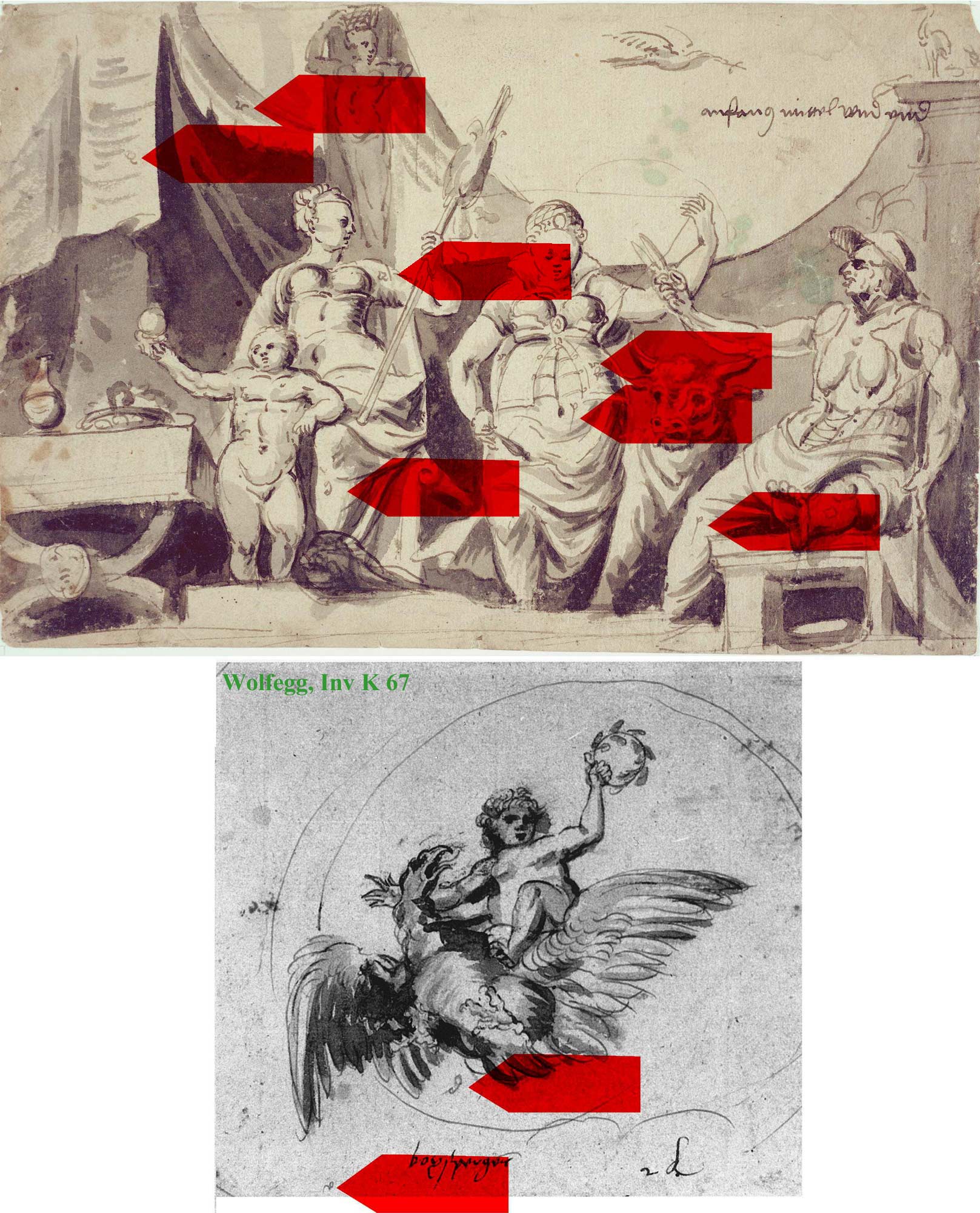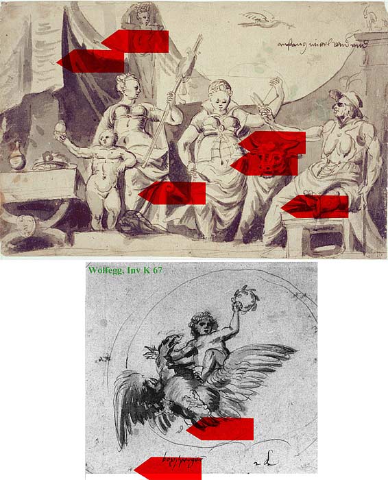 dessin, Ganymède sur l'aigle de Jupiter, lui aussi attribuable à Hans