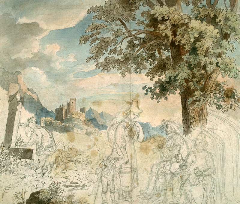 Eine Besonderheiten der vorliegenden aquarellierten Zeichnung ist, dass sie