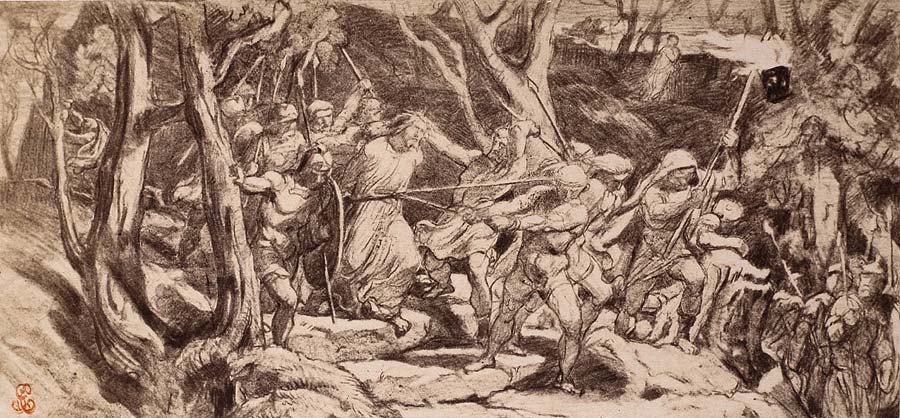 Cenci marchant au supplice - première pensée, dessin, 1851 |