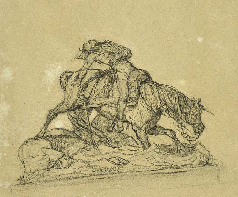 Version des Themas, die seines Schwiegervaters Horace Vernet, kondensiert.