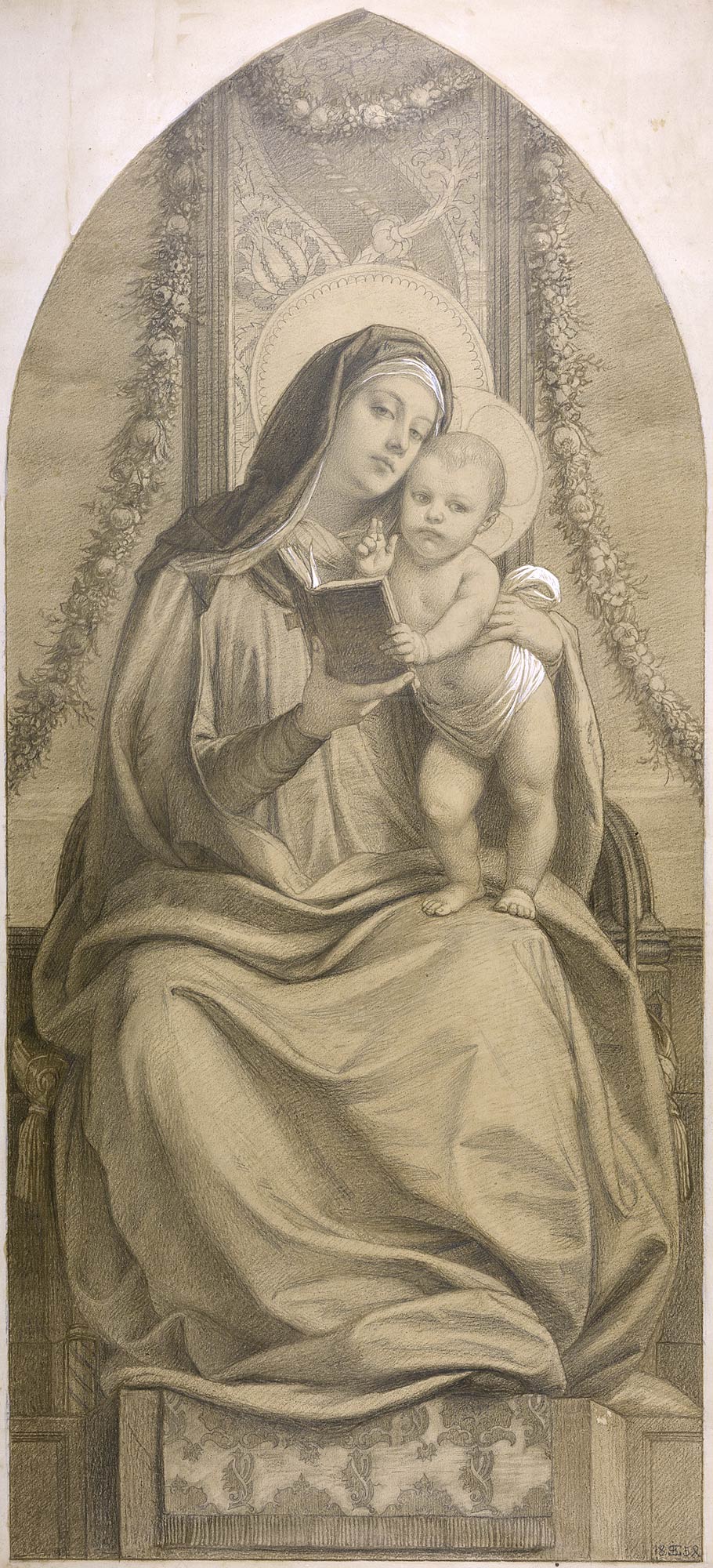Karton Leonardimadonna 1856 (Das Ölbild war eine Stiftung Steinles)Bitte für eine größere Auflösung ins Bild klicken