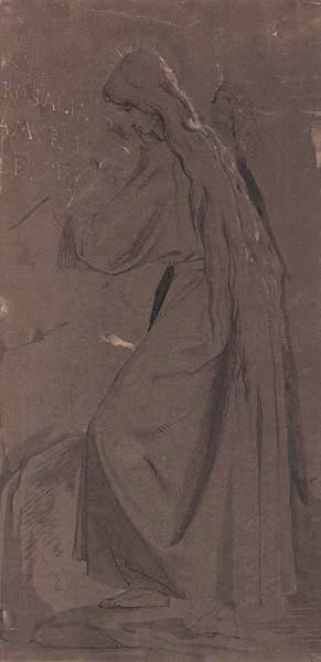 Sainte Rosalie de Palerme. Aquarelle monochrome en marron