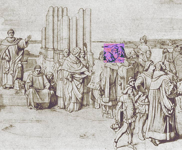 Munich1910. Dessin préparatoire au fresque (détail avec les architectes de la cathédrale) |