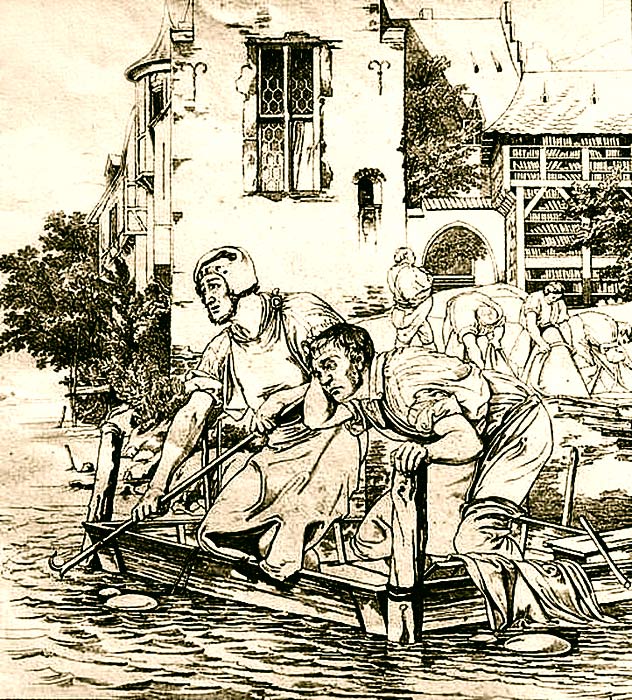 "Die trauernden Lohgerber", gelegentlich auch "Die betrübten Lohgerber" genannt (Stich nach dem Original im Städel)