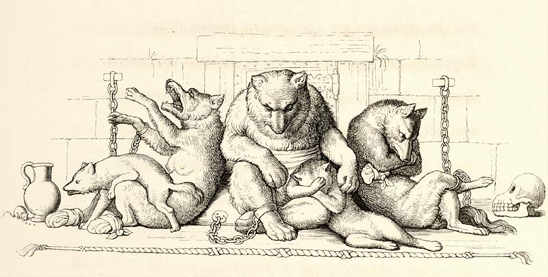 Bären und Wölfe in Ketten wie Eduard Bendemanns romantisch-larmoyante "Trauernde Juden im Exil".   Les ours et les loups au prison - une reprise de la célèbre composition de Eduard Bendemann, Les juifs sur les rives de Babylone.