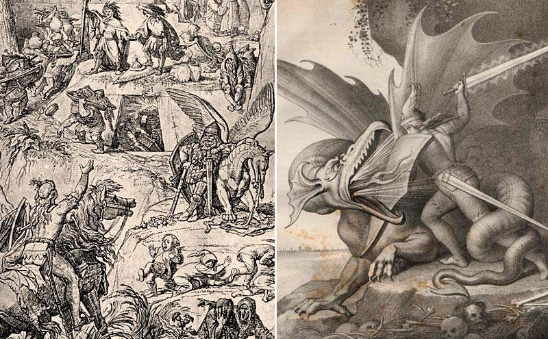 à droite: une lithographie d'après Kaulbach, du livre de Goerres |