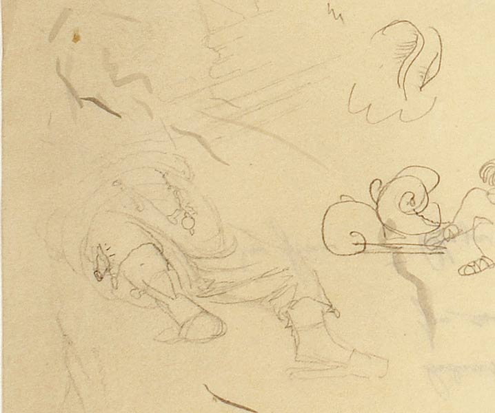 Le pantalon du riche, esquisse préparatoire à une illustration pour Goethe, Reineke Fuchs
