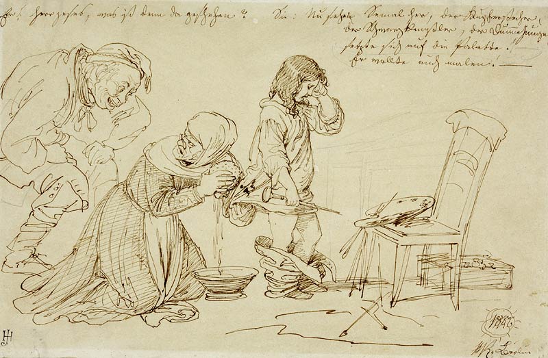 Dessin monogrammé et daté WK Berlin 1856. La grande tache de couleur