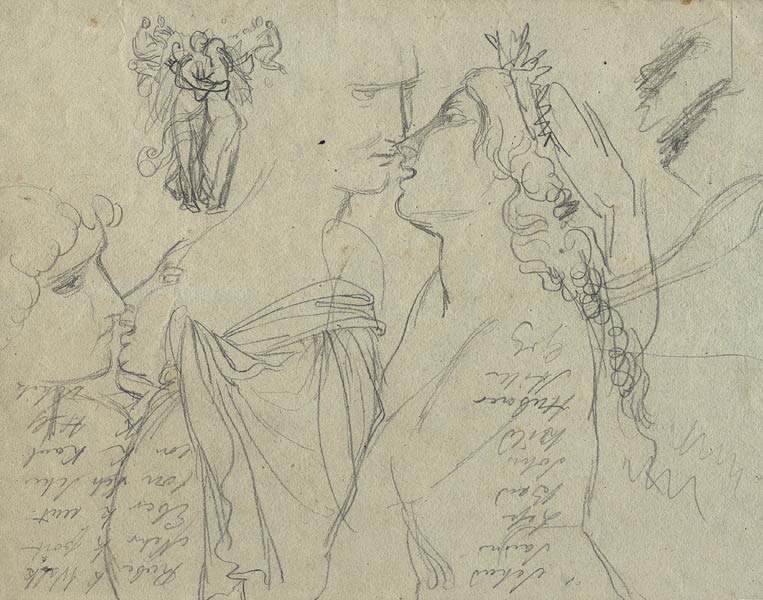Schlussszene (Versöhnung von Amor und Psyche) im Zyklus. das gleiche Motiv war ursprünglich auch für das Schlafzimmer der Königin in der Residenz vorgesehen (nicht realisiert) |