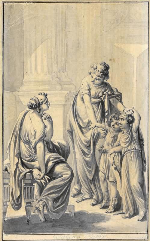 Eleazar Zeisig, dit Schenau. Ayant vécu pendant plusieurs années en France, ami de Johann Georg Wille et suiveur de Greuze, il est surtout connu pour ses invention dans le gout du dernier. Peu connue est l'activité pour les arts appliqués, dessins pour des ornements du damas. Il y a une pièce comparable au musée de Grossschoenau, lieu de naissance de l'artiste et ancien centre de la fabrication du damas dans la Saxe. |