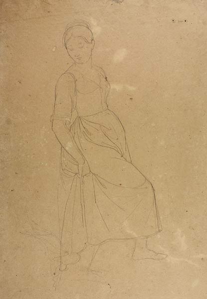 Esquisse pour la fiancée dans Le Cortège nuptial. Ce grand dessin du musée Wallraf de Cologne porte une date 1824. Le dessin est probablement plus tard, fait à Munich (vor Munich 1826-1835). Kaulbach avait sans doute l'intention de reprendre le thème. |