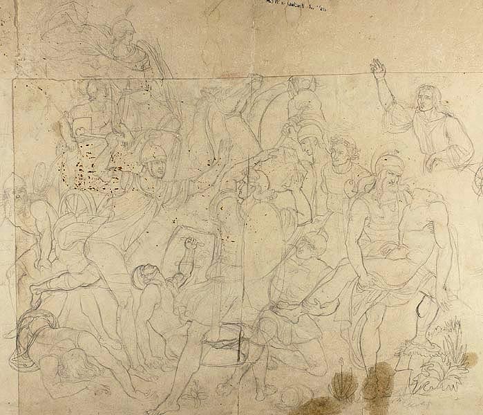 Schlacht - zur Ilias? jedenfalls um 1822 (Zeichnung verso entsprechend datiert)